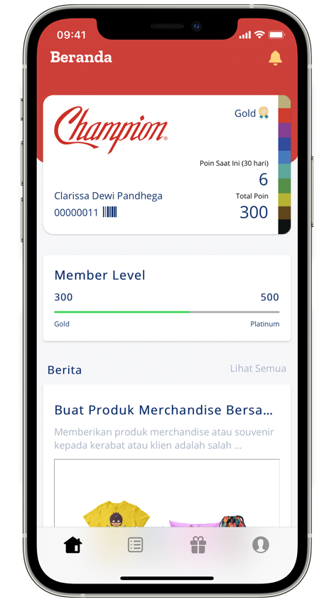 Selalu tunjukkan barcode ID Anda kepada kasir ketika bertransaksi di Champion untuk mendapatkan harga terbaik sekaligus mengumpulkan poin.
